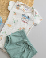 Prepare seu baby para os dias mais quentes com muito estilo e frescor! O Conjunto Body e Tapa Fralda Canelado Bebê Estampado Kombi é a escolha perfeita para o verão: leve, respirável e super confortável.
