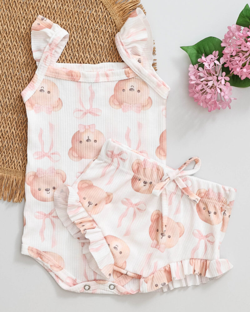 Conjunto Body Regata Babado e Tapa Fralda Bebê Ursinha Encantada