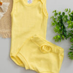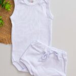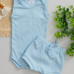 Conjunto Body Regata Canelado Azul Bebê com Tapa Fralda