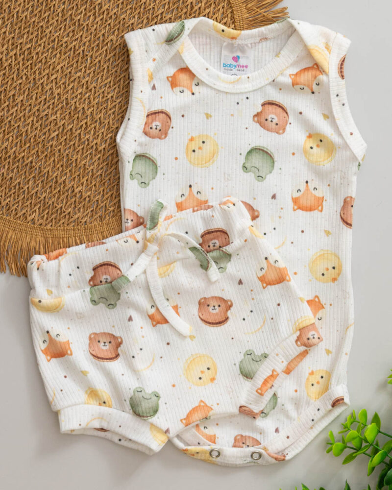 Conjunto Body Regata Listrada e Tapa Fralda Estampado Sapinho