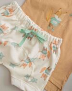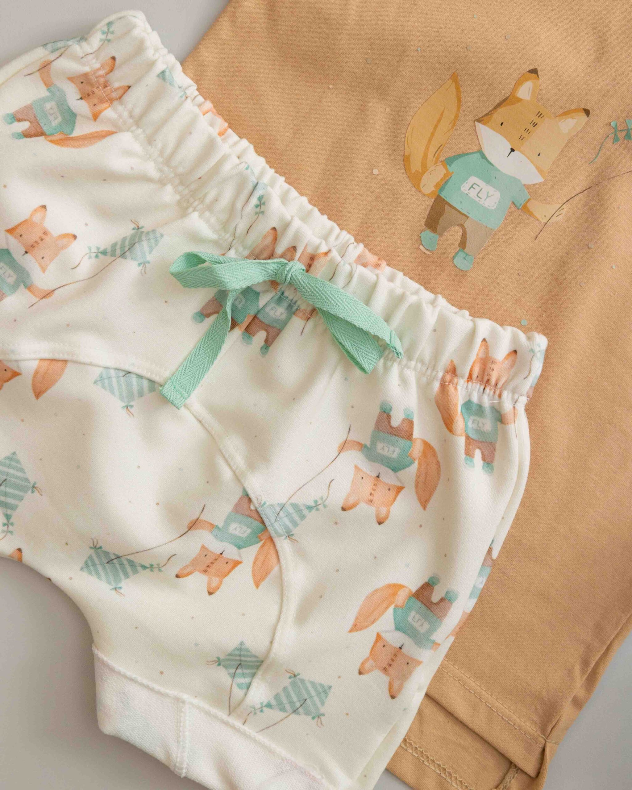 Conjunto Camiseta Long Line Bebê Curta e Bermuda Saruel MoleCotton Raposinha