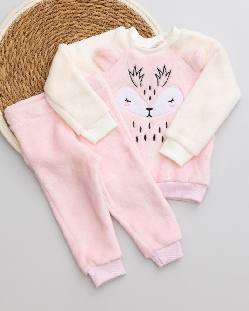 Conjunto Fleece Bordado Bichinho Com Calça Rosa Claro