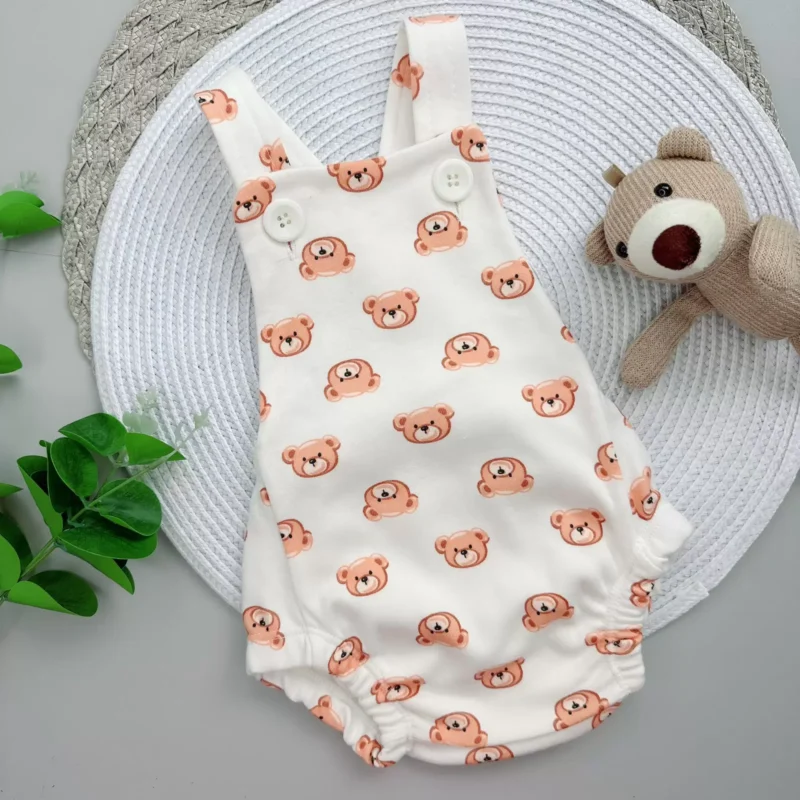 O tecido da Romper é suedine um tecido, mais levinho, super fresquinho e toque macio além de permitir que a pele da criança respire através da peça.