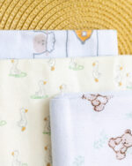 Kit 3 Cueiro Estampado Flanelado Ursinho e Patinho