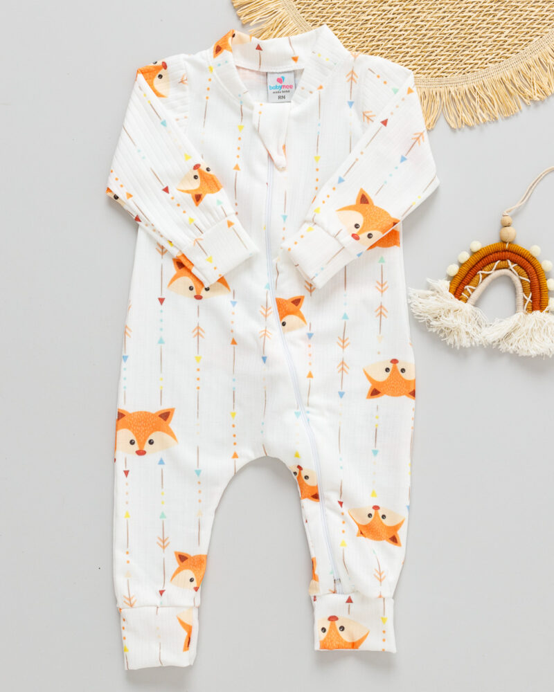 Macacão Bebê Canelado Estampado Raposinha