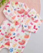Mamãe, sabe aquele macacão que é sinônimo de praticidade, conforto e fofura? É esse! O Macacão Bebê Canelado Estampado Frutas Laço foi pensado para facilitar o dia a dia com o seu baby, sem abrir mão do estilo.