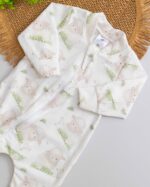 Com modelagem longa e zíper frontal, ele é super fácil de vestir e ideal para trocas rápidas. O tecido canelado é perfeito para os dias de meia estação e pode ser usado também no inverno com outras camadinhas. Possui golinha padre charmosa e acabamento com proteção interna no zíper, garantindo conforto total e segurança para a pele delicada do seu bebê.