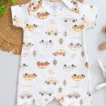 Com modelagem curta tipo romper, ele oferece liberdade de movimento e frescor na medida certa. Possui gola envelope que facilita na hora de vestir, e 3 botões entrepernas para trocas práticas e rápidas – tudo pensado para o conforto do seu baby.