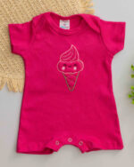 Macacão Curto Bebê Romper Suedine Bordado Sorvetinho