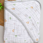 Feita com tecido altamente absorvente, nossa toalha é ideal para abraçar seu bebê com suavidade e maciez, garantindo uma secagem rápida e eficiente após o banho. Além disso, é delicada com a pele sensível do seu pequeno, prevenindo irritações e alergias.